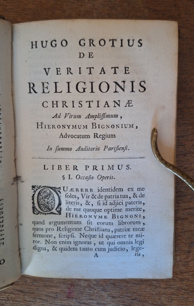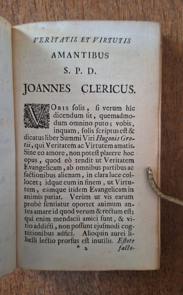 Hugo Grotius De veritate religionis Christianae. Editio adcuratior, quam tertiùm recensuit, notulisque illustravit Joannes Clericus; cujus accessere De eligenda inter Christianos dissentientes sententia,...