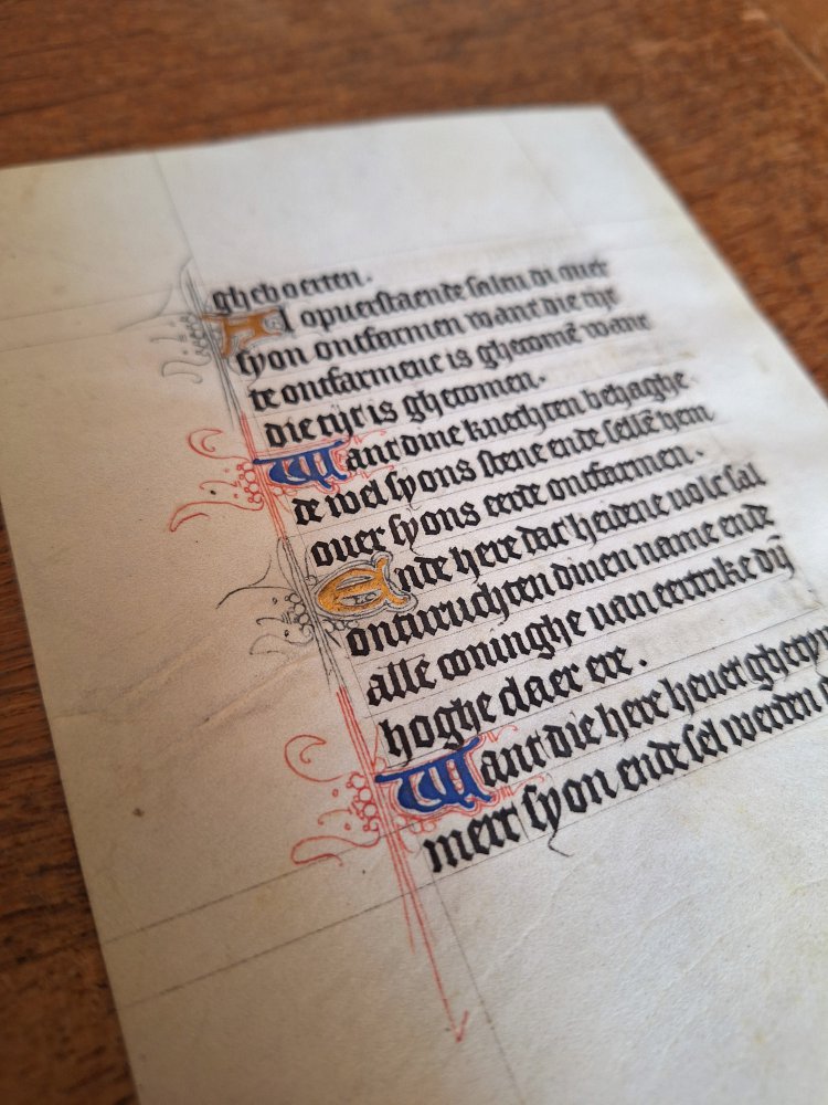 | 15th Century Dutch Manuscript leaf on Vellum15th Century Dutch Manuscript leaf on Vellum