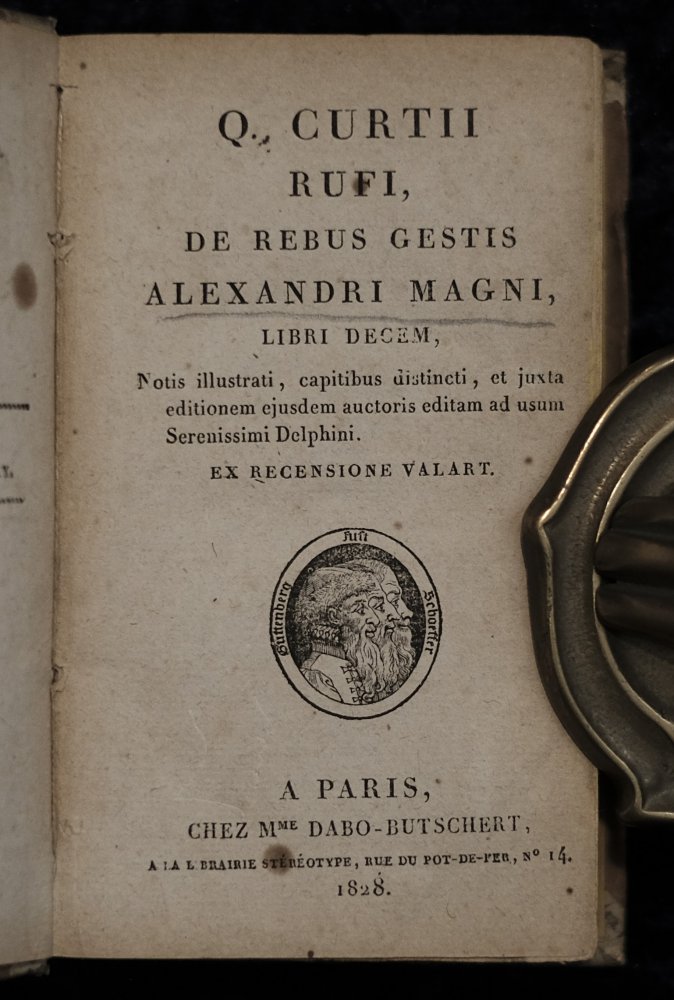| Q. Curtii Rufi , de rebus gestis Alexandri Magni, libri decem, notis illustrati, capitibus distincti, et juxta edtionem ejusdem auctoris editam ad usum Serenissimi Delphini. Ex recensione valart. A Paris,...Q. Curtii Rufi , de rebus gestis Alexandri Magni, libri decem, notis illustrati, capitibus distincti, et juxta edtionem ejusdem auctoris editam ad usum Serenissimi Delphini. Ex recensione valart. A Paris, chez Mme Dabo - Butschert. 1828