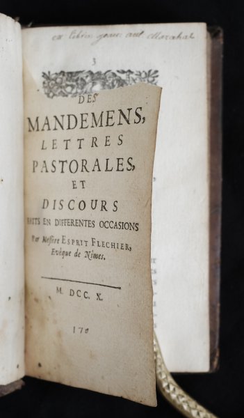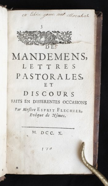 | Recueil de mandemens lettres pastorales et discours faits en differentes occasions Par Messire Esprit Flechier, Evêque de Nîmes | € 40.00 Esprit Flechier, 1710 | moreinfo more information |