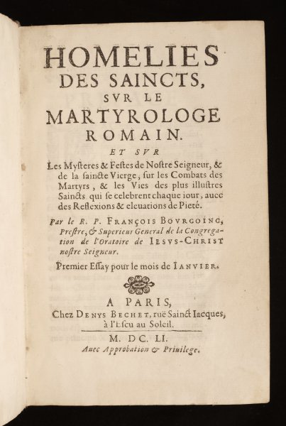 | Homélies des saincts, sur le martyrologe romain. Et sur les Mystères & Festes de Nostre Seigneur, & de la sainte Vierge | € 245.00 François Bourgoing, 1651 | moreinfo more information |