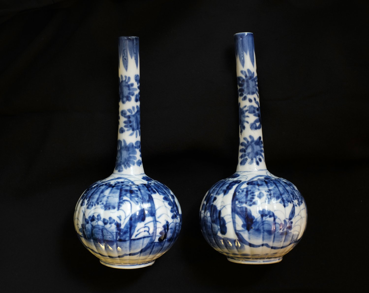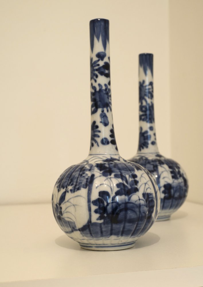 Set of 2 Japanese vases, blue/white, circa 19th century