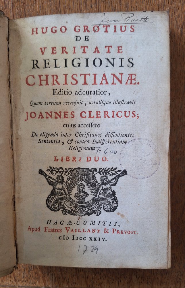 Hugo Grotius De veritate religionis Christianae. Editio adcuratior, quam tertiùm recensuit, notulisque illustravit Joannes Clericus; cujus accessere De eligenda inter Christianos dissentientes sententia,...