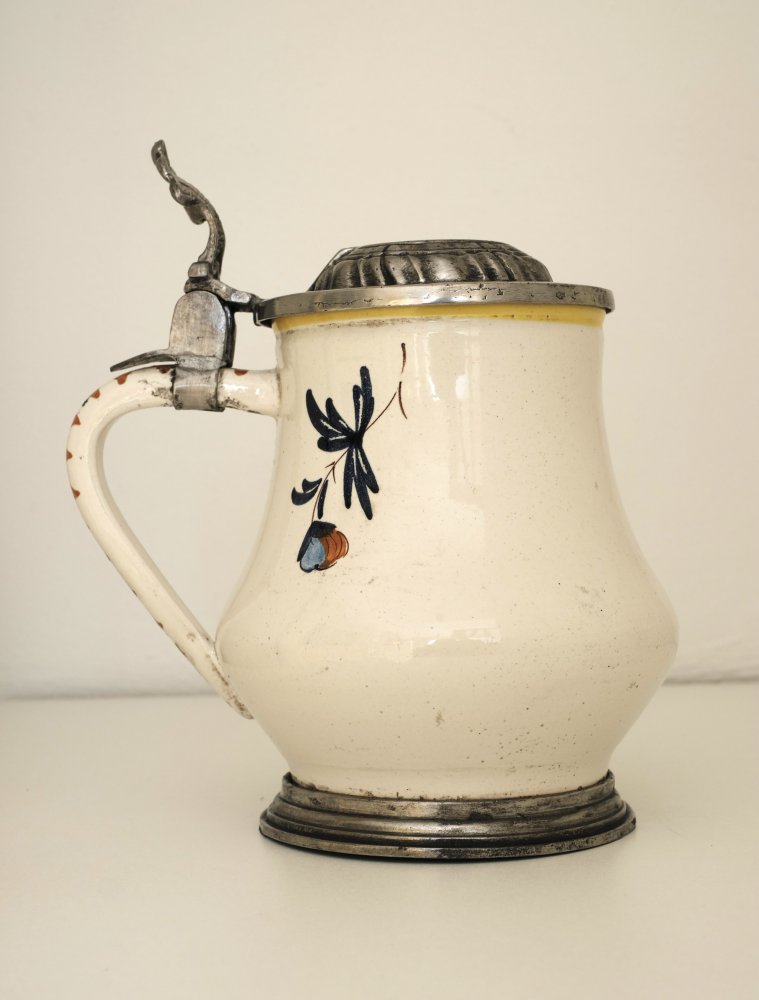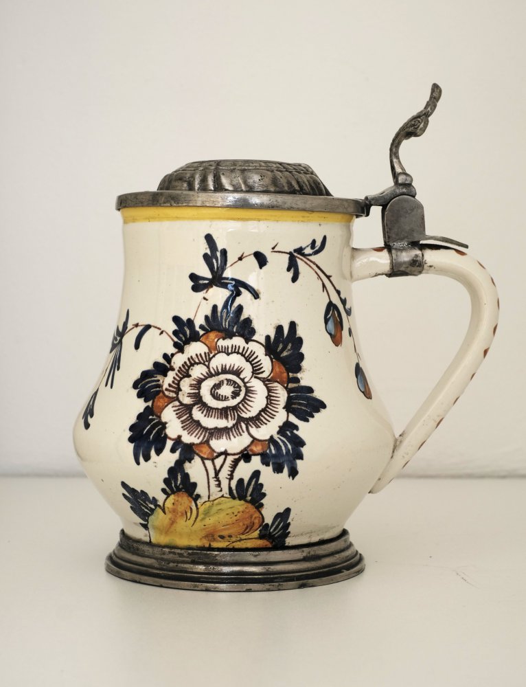 | German beer stein with pewter lid, 19th century.German beer stein with pewter lid, 19th century.