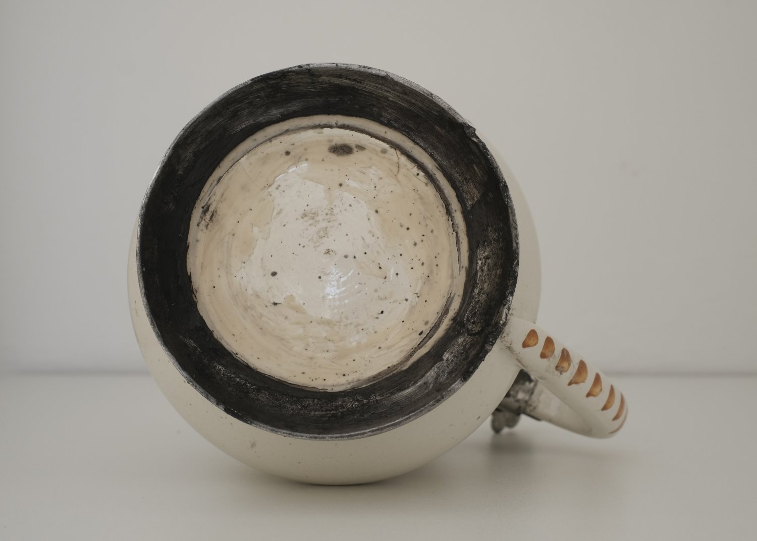 | Late Roman ceramic oil lamp with a carved face on top. Late Roman ceramic oil lamp with a carved face on top.