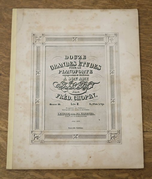 | Douze grandes études pour le pianoforte composées et dédiées à son ami F. Liszt par Fréd. Chopin. Oeuvre 10. Liv. II. Propriété des Editeurs. Enregistré aux Archives de l'Union. Leipsic, chez Fr....Douze grandes études pour le pianoforte composées et dédiées à son ami F. Liszt par Fréd. Chopin. Oeuvre 10. Liv. II. Propriété des Editeurs. Enregistré aux Archives de l'Union. Leipsic, chez Fr. Kistner. Paris, chez M. Schlesinger. 1018. 1019. Nouvelle Edition.