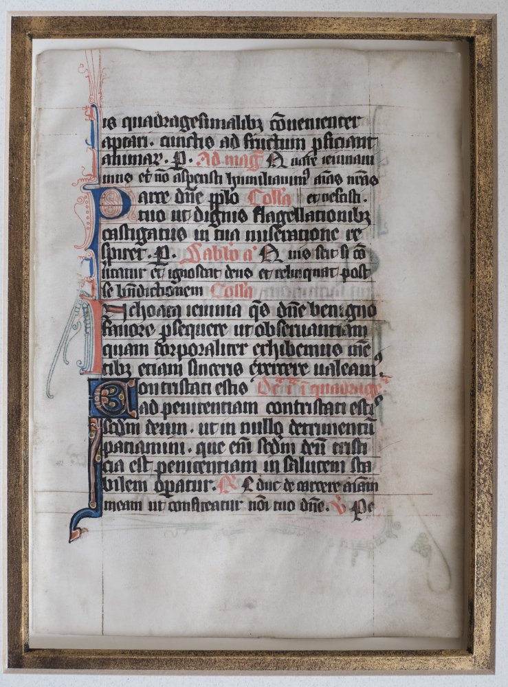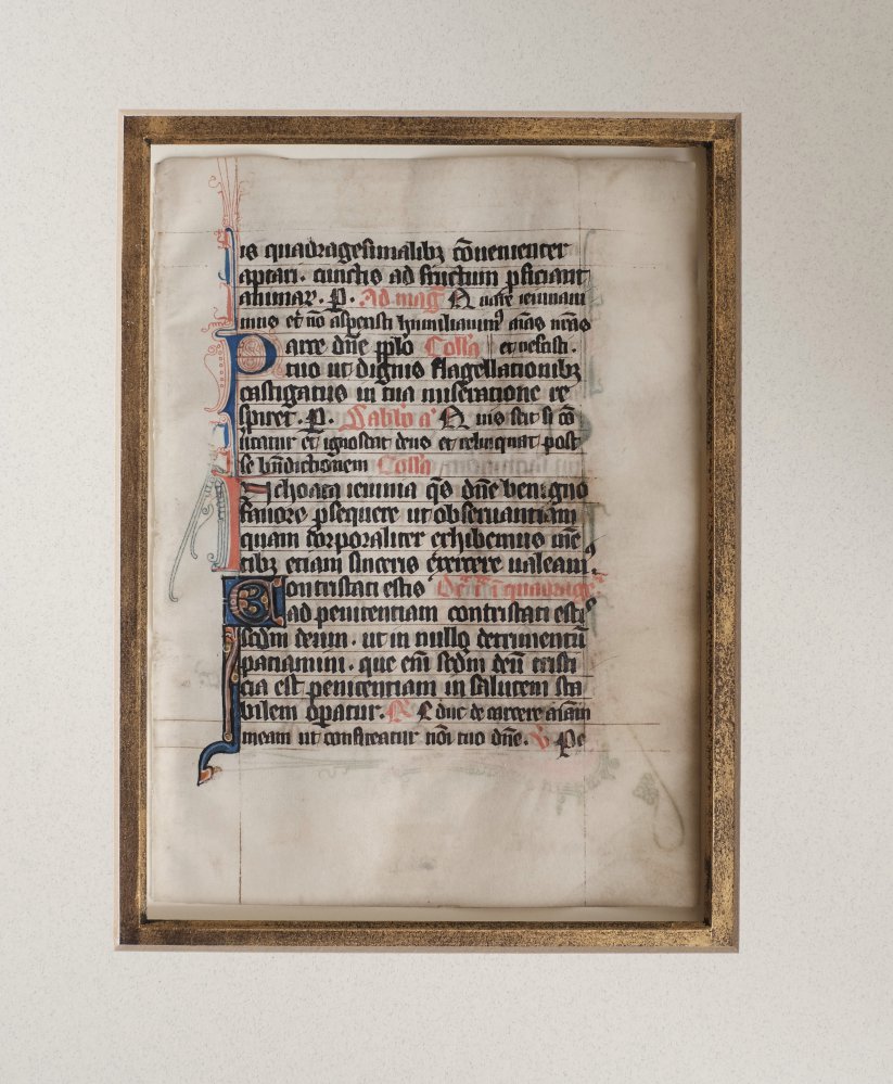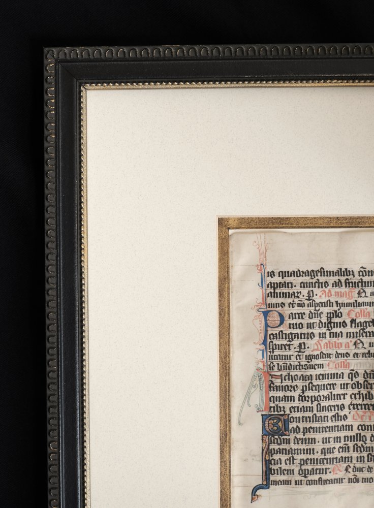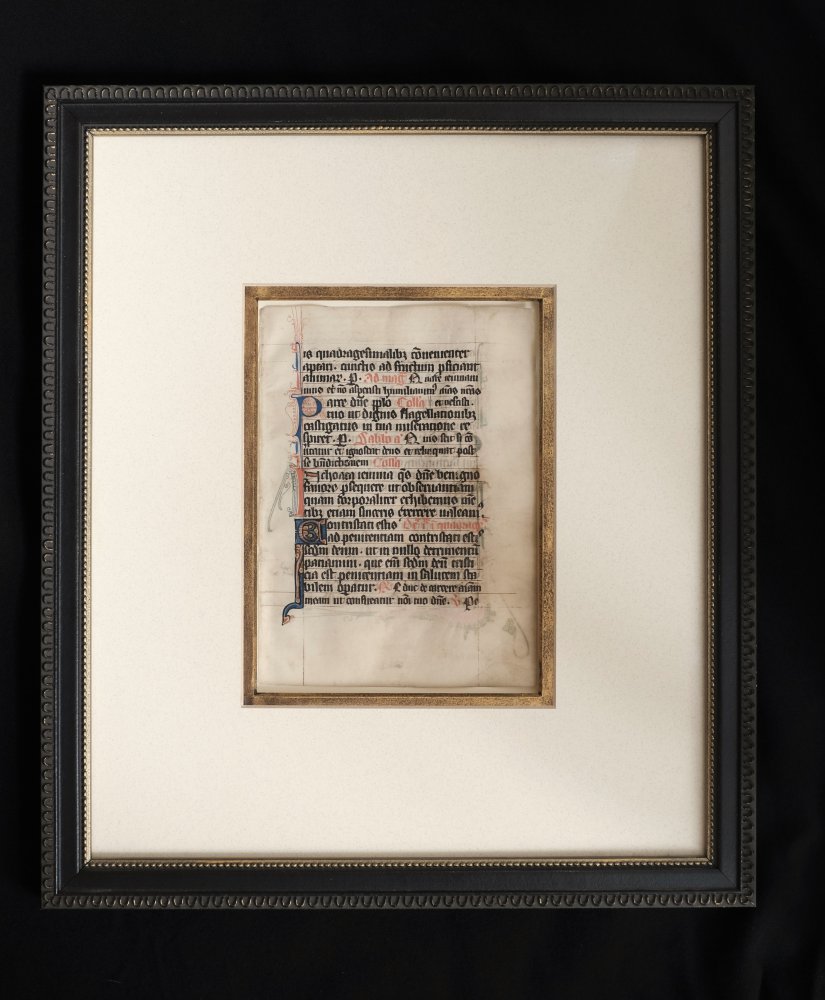 Beautiful manuscript leaf from the 14th century (framed)Beautiful manuscript leaf from the 14th century (framed)
