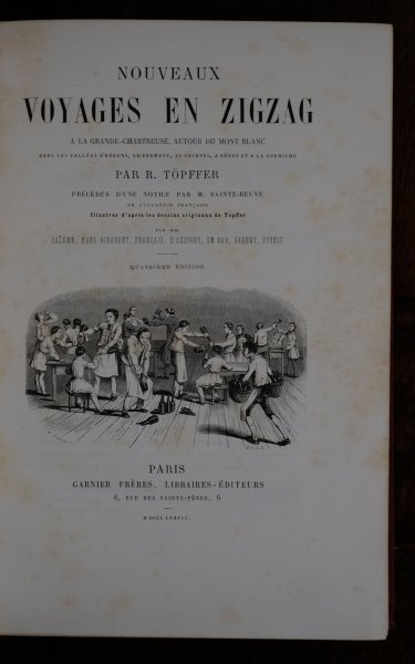 | Nouveaux Voyages en Zigzag. A la grande-chartreuse, autour du mont blanc dans les vallées d'hébens, de zermatt, au grimsel, a génes et a la corniche. Par R. Töpffer précédés d'une notice par M. Sai...Nouveaux Voyages en Zigzag. A la grande-chartreuse, autour du mont blanc dans les vallées d'hébens, de zermatt, au grimsel, a génes et a la corniche. Par R. Töpffer précédés d'une notice par M. Sainte-beuve de l'académie française Illustrés d'après les dessins originaux de Töpffer. Par mm. Calame, Karl Girardet, Français, D'aubigny, de bar, Gagnet, Forest. Quatriéme édition. Paris Garnier frères, libraires-éditeurs. 6, rue des saints-pères, 6. M. DCCC. LXXVII.