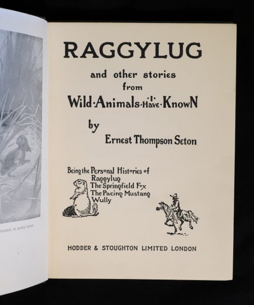| Raggylug and other stories from Wild Animals I Have Known by Ernest Thompson Seton Being the Personal Histories of Raggylug The Springfield Fox The Pacing Mustang Wully Hodder & Stoughton Limited London | € 10.00 Ernest Thompson Seton, 1925 | moreinfo more information |