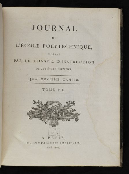 | Journal de l'école polytechnique, publié par le conseil d'instruction de cet établissement. Quatorzième cahier. Tome VII. A Paris, de l'imprimerie impériale. Avril 1808. | € 200.00 1808 | moreinfo more information |
