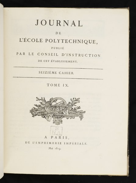 | Journal de l'école polytechnique, publié par le conseil d'instruction de cet établissement. Seizième cahier. Tome IX. A Paris, De l'imprimerie impériale. Mai 1813. | € 200.00 1813 | moreinfo more information |