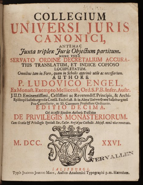 | Collegium universi juris canonici, antehac Juxta triplex Juris Objectum partitum. Nunc vero servato ordine decretalium accuratius translatum, et indice copioso locupletatum. Omnibus tam in Foro, quam in S... | € 300.00 Ludwig Engel, 1726 | moreinfo more information |