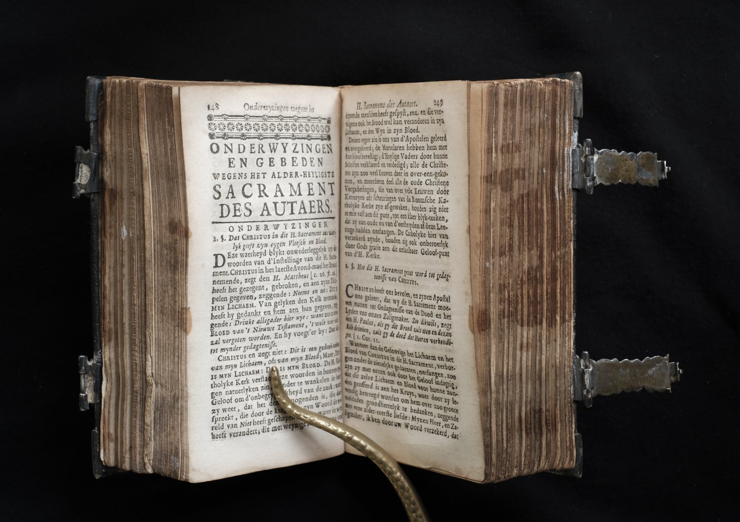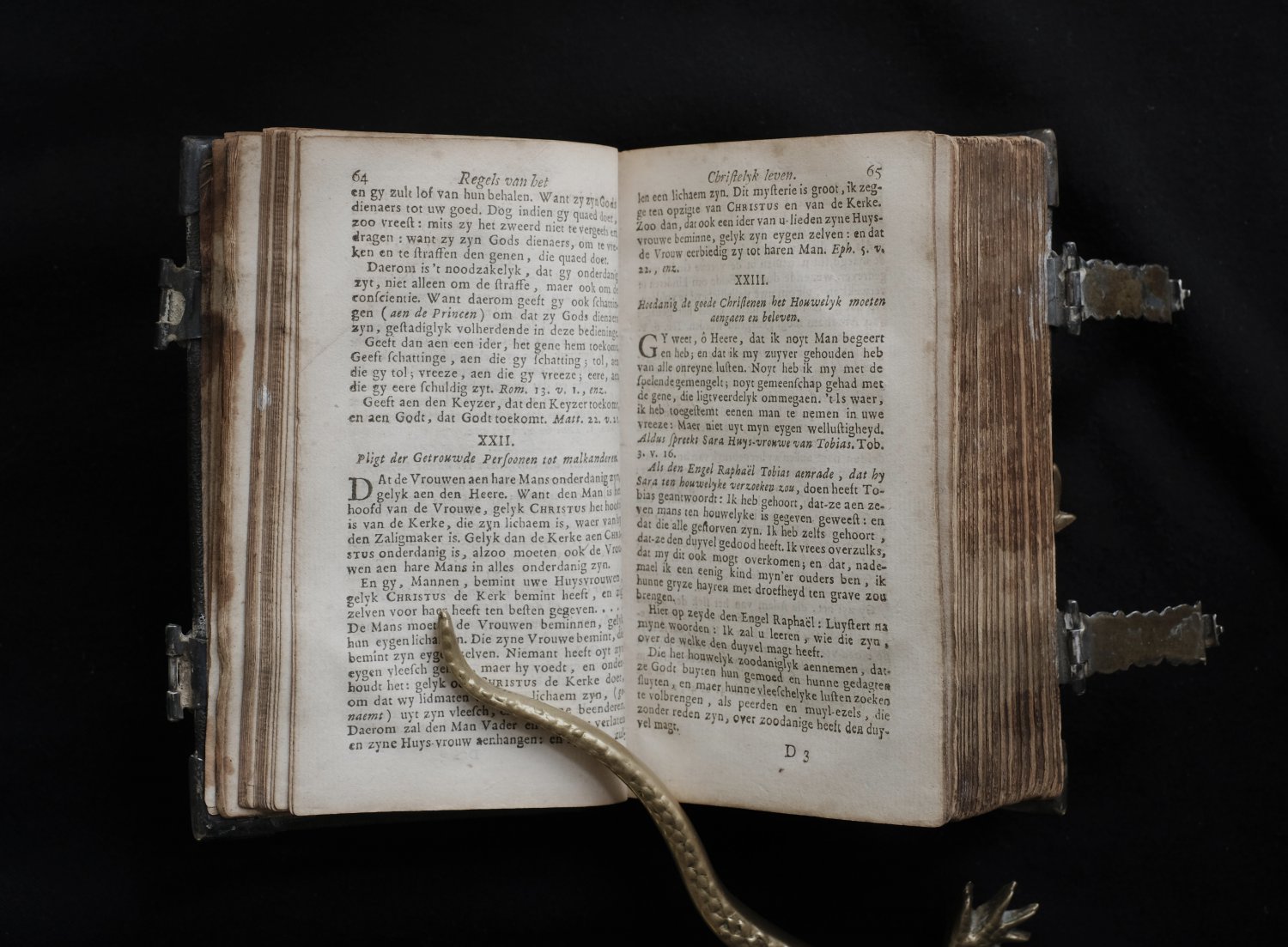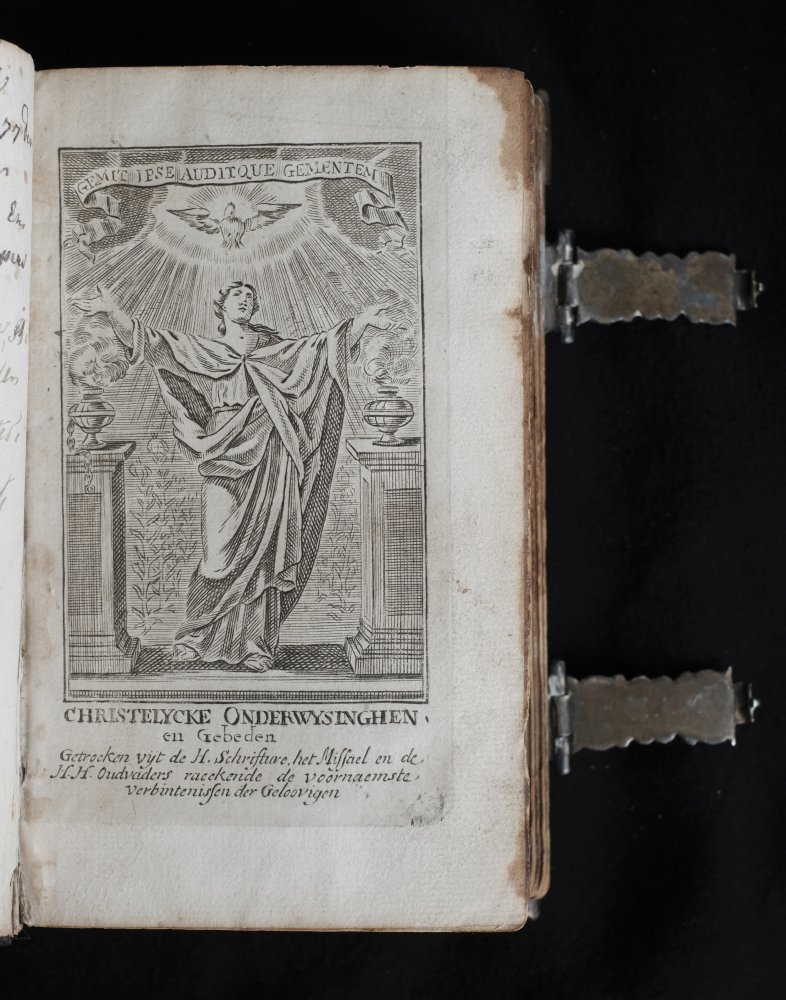 | Christelyke onderwyzing en gebeden, getrokken uyt de H. Schrifture, den missael, en de HH. Oud-Vaders, wegens de voornaemste pligten der geloovige. | € 275.00 1756 | moreinfo more information |