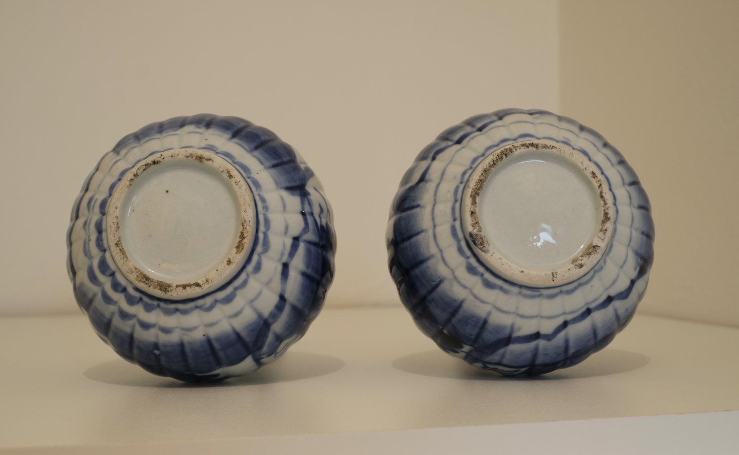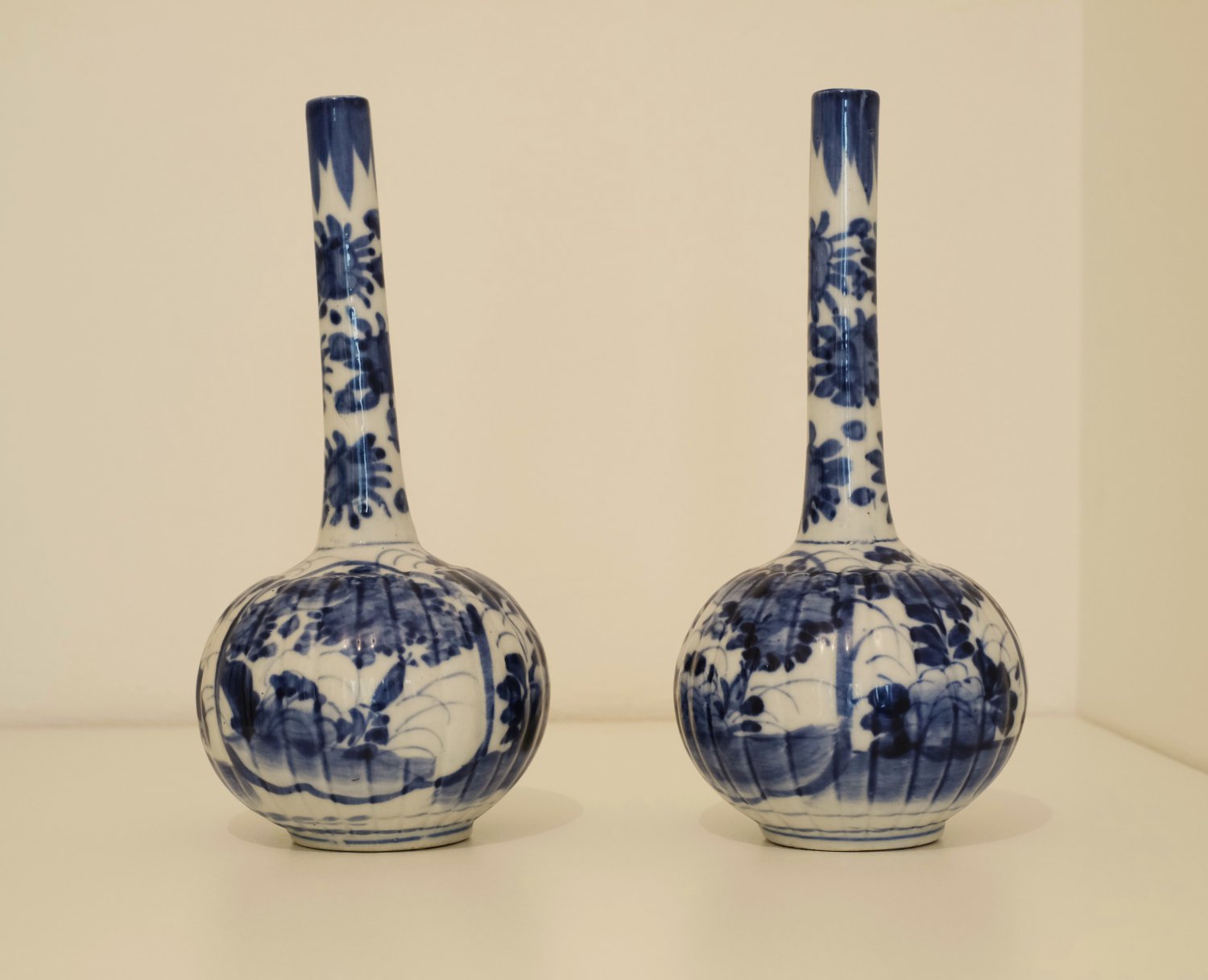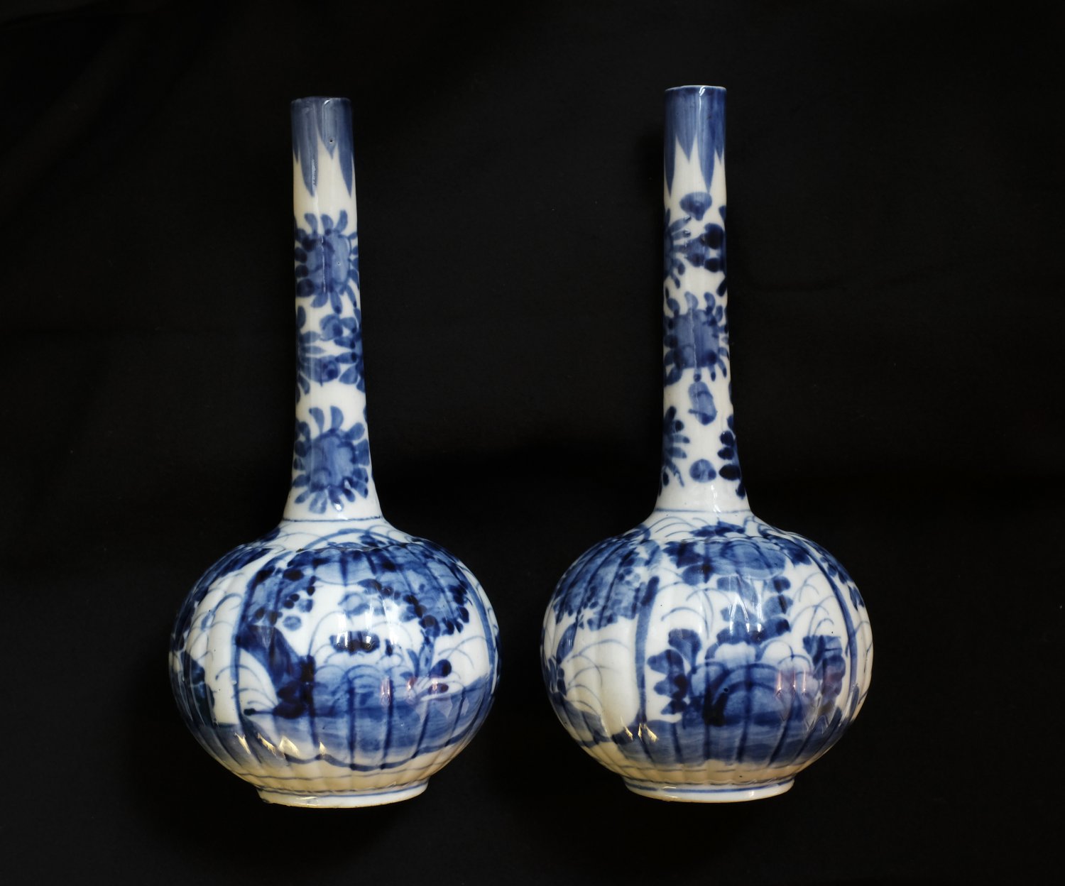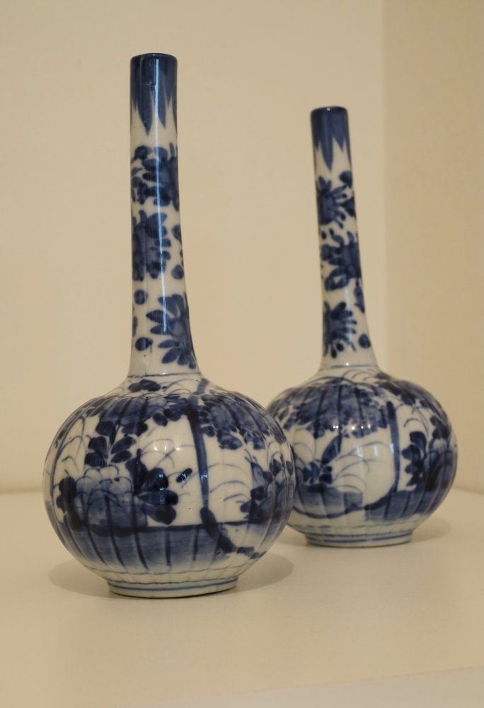 Set of 2 Japanese vases, blue/white, circa 19th century