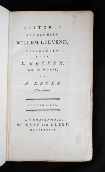 | Historie van den Heer Willem Leevend, uitgegeven door E. Bekker, Wed. Ds. Wolff, en A. Deken (niet vertaald.) Eerste (t/m agtste) deelHistorie van den Heer Willem Leevend, uitgegeven door E. Bekker, Wed. Ds. Wolff, en A. Deken (niet vertaald.) Eerste (t/m agtste) deel
