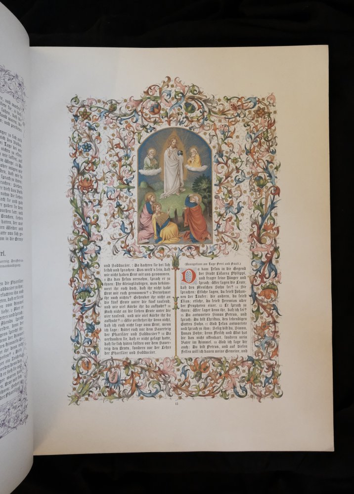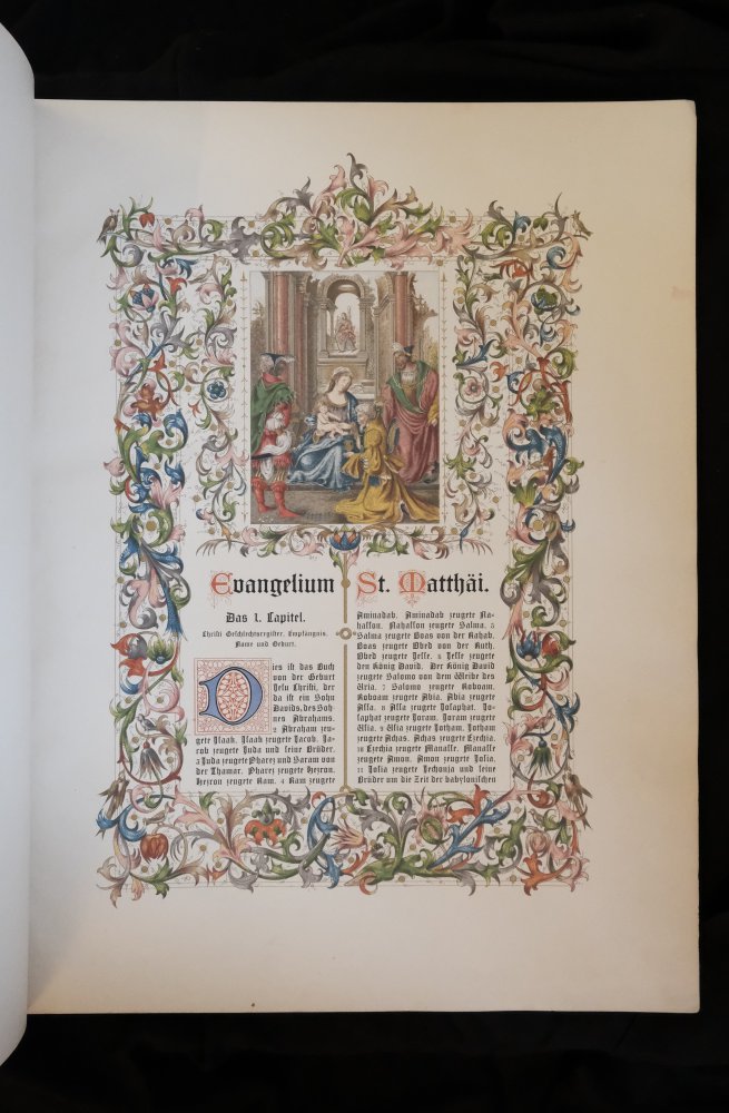 | Das Neue Testament nach der deutschen Uebersetzung Dr. Martin Luther's. Im Charakter der Handschriften-Malerei des Mittelalters, geschmückt mit bunten Umrahmungen, Zierleisten, Initialen und religiösen...Das Neue Testament nach der deutschen Uebersetzung Dr. Martin Luther's. Im Charakter der Handschriften-Malerei des Mittelalters, geschmückt mit bunten Umrahmungen, Zierleisten, Initialen und religiösen Gemälden in getreuen farbigen Nachbildungen unter Mitwirkung hervorragender Künstler und Kunstgelehrter herausgegeben