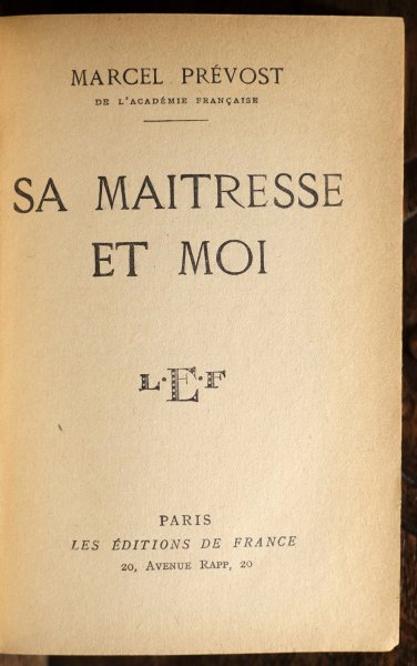 | Marcel Prévost de l'académie Française. Sa Maitresse et Moi. L.E.F. Paris les Édition de FRance 20, Avenue Rapp, 20.Marcel Prévost de l'académie Française. Sa Maitresse et Moi. L.E.F. Paris les Édition de FRance 20, Avenue Rapp, 20.