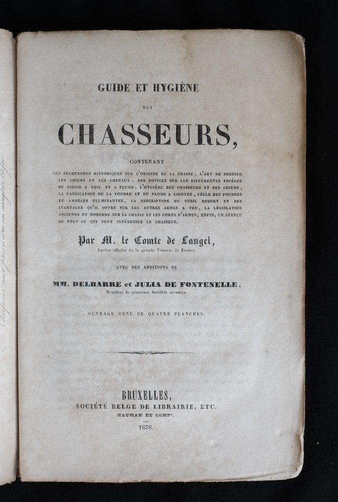 | Guide et hygiène des chasseurs : contenant des recherches historiques sur l'origine de la chasse, l'art de dresser les chiens et les chevaux, des notices sur les différentes espèces de gibier a poil...Guide et hygiène des chasseurs : contenant des recherches historiques sur l'origine de la chasse, l'art de dresser les chiens et les chevaux, des notices sur les différentes espèces de gibier a poil et a plume, l'hygiène des chasseurs et des chiens, la fabrication de la poudre et du plomb a giboyer, celle des poudres et amorces fulminantes, la description du fusil robert et des avantages qu'il offre sur les autres armes a feu, la législation ancienne et moderne sur la chasse et les ports d'armes ; enfin, un aperçu de tout ce qui peut intéresser le chausseur.