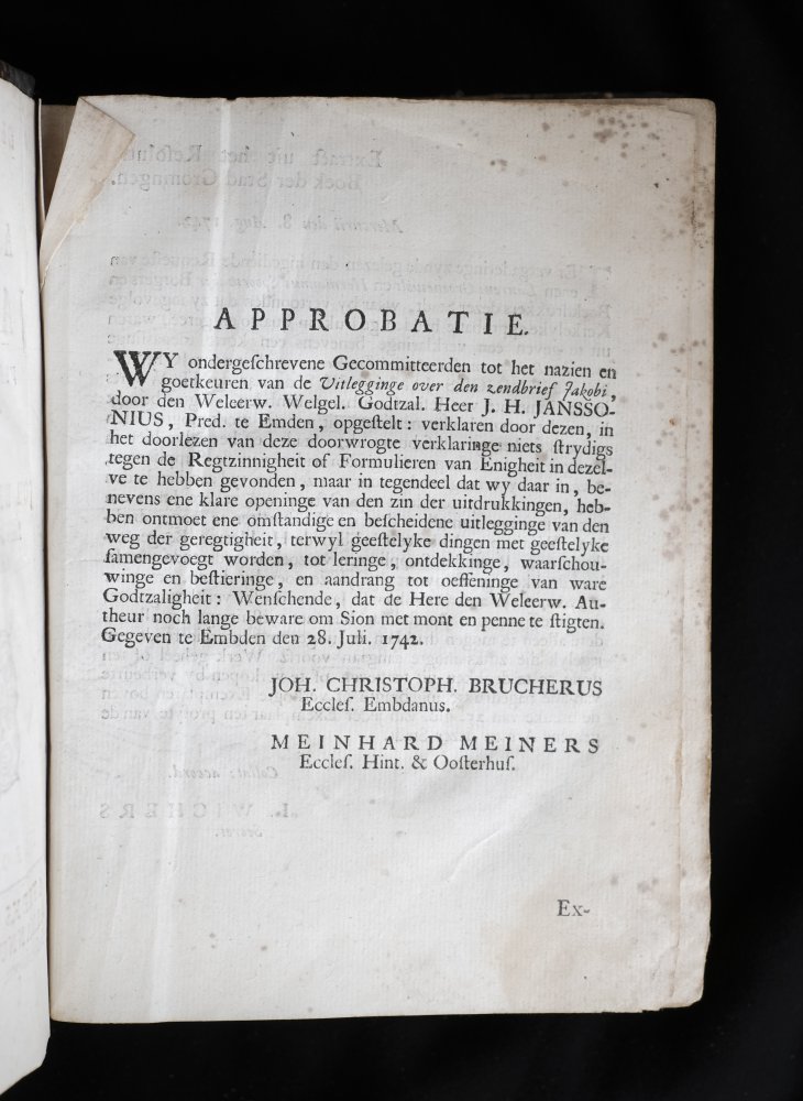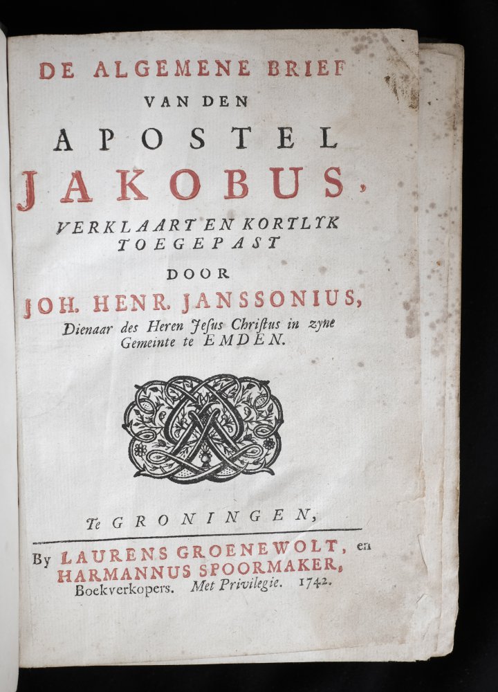 | De algemene brief van den Apostel Jakobus, verklaart en kortlyk toegepast door Joh, Henr. Janssonius, Dienaar des Heren Jezus Christus in zyne Gemeinte te Emden. De algemene brief van den Apostel Jakobus, verklaart en kortlyk toegepast door Joh, Henr. Janssonius, Dienaar des Heren Jezus Christus in zyne Gemeinte te Emden.